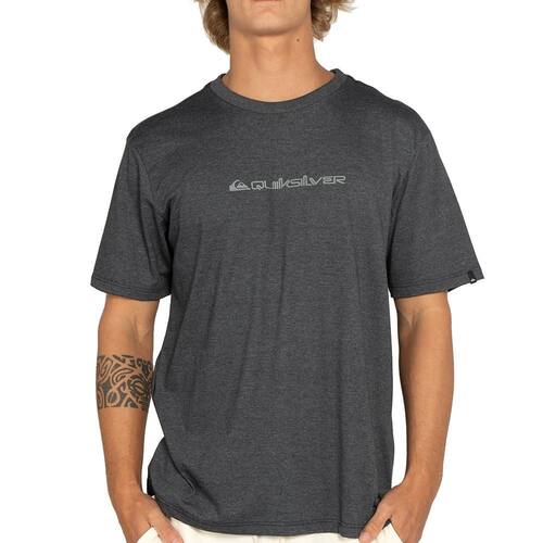 Camiseta QuikSilver feita em modelagem regular, meia malha, estampa aplicada na frente e etiqueta da marca aplicada na manga do lado esquerdo de quem veste.