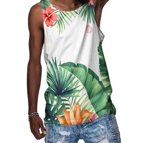 Camiseta Regata Havaiana Folhas e Flores Vermelhas