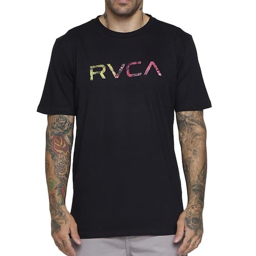Camiseta RVCA feita em malha 30.1 penteada, modelagem regular fit (mais solta ao corpo para maior liberdade dos movimentos), com estampa de filtro centralizada na frente, estampa interna de tamanho e tag personalizado.