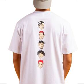 Feita em meia malha 100% algodão, ela proporciona conforto e durabilidade, ideal para o uso diário. A modelagem ampla oferece um visual despojado, enquanto a gola careca garante um toque moderno e estiloso. O destaque fica por conta das caricaturas dos membros da banda estampadas na parte  traseira, criando uma peça cheia de personalidade e autenticidade.