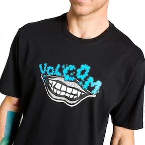 Camiseta Volcom feita em modelagem regular, meia malha 30.1, silk frontal, assinatura Volcom na manga, etiqueta interna e viés contrastante.