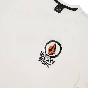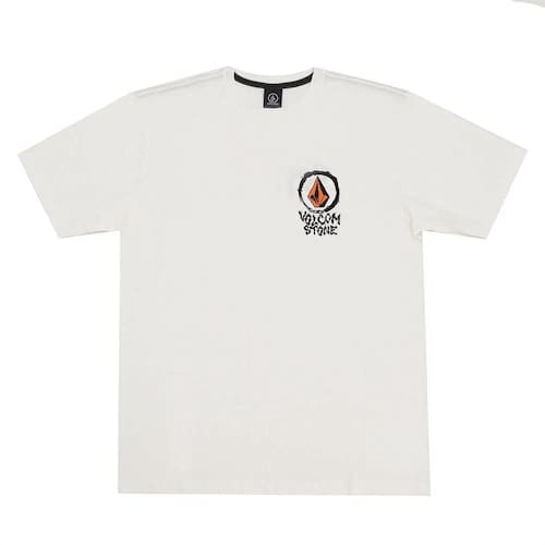 Camiseta Volcom feita em modelagem regular, meia malha 30.1, silk frente e costas, assinatura Volcom na manga, etiqueta interna e viés contrastante.
