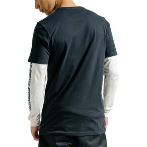 Camiseta Hurley silk, meia malha 30.1, modelagem long, silk frontal da marca, assinatura Volcom na manga, etiqueta Volcom na barra, viés contrastante e etiquetas personalizadas.