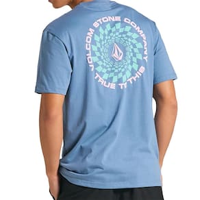 Camiseta Volcom feita em modelagem regular, meia malha 30.1, silk frente e costas, assinatura Volcom na manga, etiqueta interna e viés contrastante.