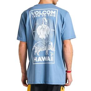 Camiseta Volcom feita em modelagem regular, meia malha 30.1, silk frente e costas, assinatura Volcom na manga, etiqueta interna e viés contrastante.