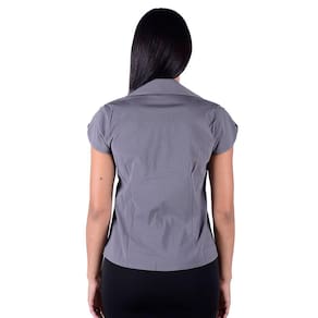 Adquira agora o Camisete Feminino Profissional de Manga Curta em Tecido de Poplin na cor cinza escuro e destaque-se com estilo e sofisticação.
