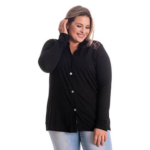 Camisete feminino elaborado em malha viscose com elastano. Possui fechamento com botões, detalhe de renda e prega, punhos com botões. Peça com boa elasticidade, leve, toque macio. Use-a de forma mai soltinha ou justa ao corpo, combine os mais variados e estilos de looks. Nos dias mais fresquinhos ou de frio intenso esteja bem vestida e sinta-se confortável!