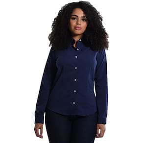 Camisete Tricoline Manga Longa Azul Noite - Azul Petróleo - PP