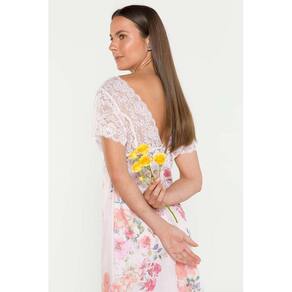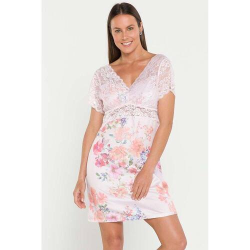 Camisola Feminina Curta Estampada e Renda Vazada Rosa - P - 600.064