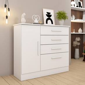Características: Estrutura em MDP 1 Porta 4 Gavetas Puxadores das gavetas em MDF 1 Prateleira Corrediças telescópicas
