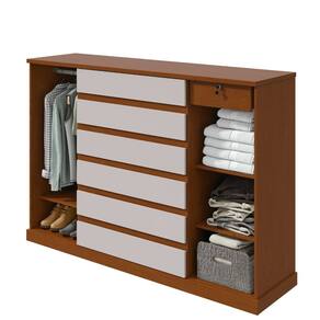 Características: 1 Cabideiro em alumínio 7 Gavetas sendo uma interna com chave 3 Prateleiras 2 Portas Corrediças telescópicas Estrutura em MDP/MDF Fecho toque nas portas e na última gaveta Possui lugar para sapatos Tampo de 25mm