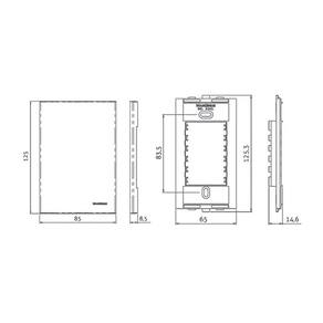 Dimensões AxLxP (mm): Placa: 125x85x8,5 - Suporte: 125,3x65x14,6