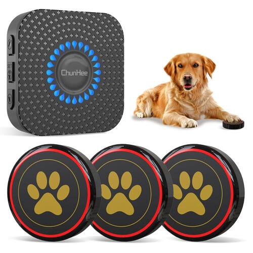 - ? e conformidade?A campainha inteligente ChunHee para cães é aprovada pela CE, FCC e RoHS. Inclui instruções detalhadas e sugestões de treinamento, ajuda você a ensinar rapidamente seu cão a tocar uma campainha para expressar a necessidade de sair e ir ao banheiro!