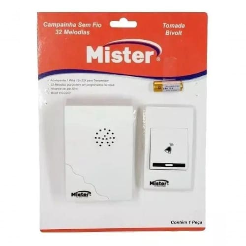 - 1x Campainha sem Fio 32 Melodias Bivolt Mister