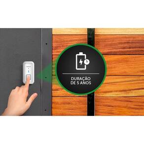 Campainha sem fio com bateria cib 101 branca - intelbras Bateria de longa duração O modelo já vem equipado com uma bateria de alta performance que tem duração estimada de até 5 anos. Instalação fácil e rápida Com instalação plug & play, a campainha sem fio cib 101 sai da fábrica totalmente sincronizada e pronta para instalação. Resistência climática Produzida com material de altíssima qualidade, a cib 101 é totalmente preparada para uso externo, sendo resistente a mudanças climáticas. Campainha sem fio, com bateria de alta performance, fácil Instalação e resistência climática. design moderno e robusto, disponível nas cores branca e preta. equipado com uma bateria de alta performance com duração estimada De até 5 anos. tecnologia sem fio, com instalação plug & play. preparada para uso externo, sendo resistente a mudanças climáticas. alcance de até 100 metros sem barreiras. sincronização de até 10 módulos externos e inúmeros módulos internos. 5 níveis de volume e 5 melodias. leds indicativos. produto sai de fábrica sincronizado, pronto para instalação. Especificações técnicas Produto cib 101 Alimentação bivolt automático 100 a 240 vac/50-60 hz Alimentação transmissor 1x bateria 3 v 220mah cr2032 instalada no produto Frequência de operação 433.92 mhz Volume 5 níveis Melodia 5 melodias Material abs Alcance até 100 metros sem barreiras Proteção do transmissor ip44 Dimensão 86,6 x 58 x 76,2 mm Dimensão transmissor 48,6 x 97,8 x 20,5 mm Peso 77g Peso transmissor 42g