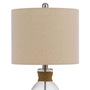 Candeeiro de mesa Benjara com corpo de vidro bolha e detalhes em corda, bege