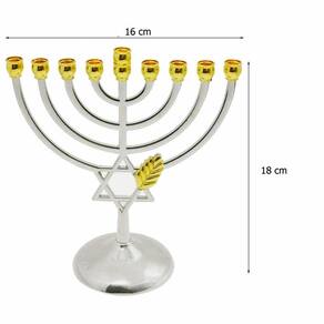 Candelabro 9 velas - menorá - hanukkah chanukiá Graça e paz somos da maranata shofar vendemos shofar, talits, candelabros menorah, kipá, chaveiros, castiçais, torah, além de diversos itens importados de israel. Chanukiah - candelabro 9 pontas medida: 18 cm de altura 16 cm de largura. Material: zamac e banho de prata. Marca: Não Informado