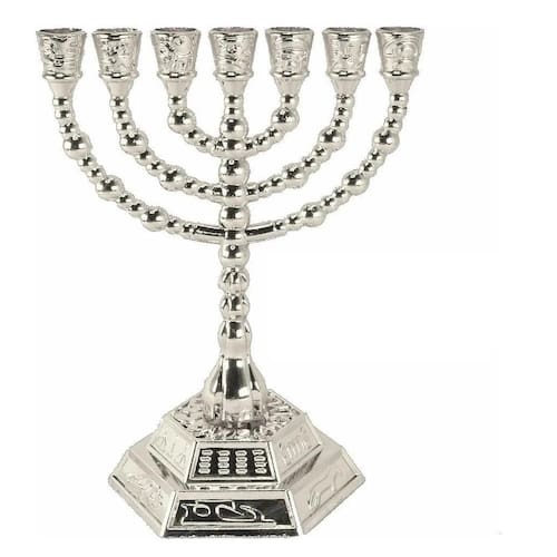 Esta menorah traz em seu corpo estrutural os símbolos que eram os desenhos das bandeiras de cada uma das 12 tribos de israel: