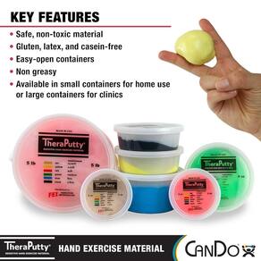 Cando Theraputty Massa Exercício Para Mãos Tipo Firm Azul 56G Cando TheraPutty Standard Hand Exercise Putty Para Reabilitação, Exercícios, Terapia de Mão, Terapia Ocupacional, Fortalecimento das Mãos, Melhorar as Habilidades Motoras, Alívio do Pessoas de todas as idades podem se beneficiar do uso do TheraPutty. As crianças podem usá-lo para desenvolver habilidades motoras finas ou usá-lo para brincar. Os adultos podem usá-lo para reabilitação da mão, fortalecimento geral da mão e alívio do . Theraputty é feito de materiais premium que não secam com o tempo. É látex, sem glúten e sem caseína. Seguro para todos, TheraPutty não é tóxico se ingerido. Modelo: Firm Contém 56g dos eua
