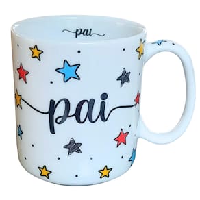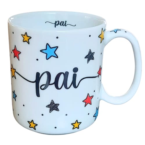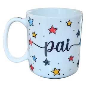 Caneca 300ml Pai - Porcelana - Decoração Estrela Caneca com design bem interessante, você pode presentear as pessoas que você gosta. Muito boas para presentear os pais, sejam de sangue ou de coração.Contem decoração de estrelas, que as deixam bem modernas e bonitas Forte resistente, podem ir ao micro-ondas e lava-louças.Ótimas para servir café com leite, água e bebidas em geral. Decalque com queima e fixação em alta temperatura, o que dá um brilho e charme há qualquer ambiente. e não desbotam com o tempoOBS: Embalagem contem 1 unidade Marca: Antilope Decor Porcelanas