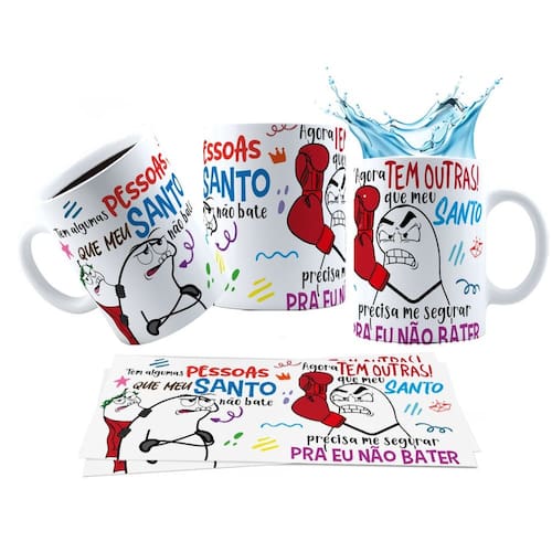 Caneca 325ml Tem algumas pessoas que meu santo não bate, agora tem outras que meu santo precisa me segurar pra eu não baterIdeal para você ou presentear!Serve para ornamento decorativo, vaso, porta lápis, porta treco, caneca, etcCapacidade: 325mlTamanho: Altura: 9,5cm – Largura (Alça): 12cm – Diâmetro: 8cmMaterial: CerâmicaProduto novo com caixaVALOR UNITÁRIOLavar antes do usoNão usar lava-louçasNão usar a parte verde da esponjaPode ir no micro-ondas, mas evite o excesso e uso prolongadoLavar com esponja maciaQuedas ou choques podem danificar o produtoNão utilizar limpa alumínio e saponáceos
