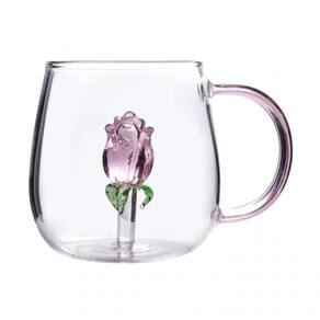 Caneca 3D de Vidro Borossilicato 350ml Flor Rosa Presente Romântico e Elegante.