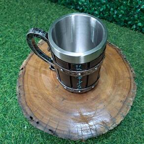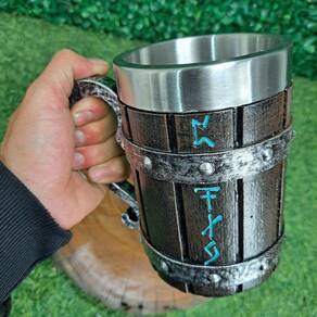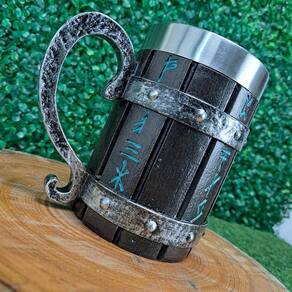 Apresentamos a Caneca Viking Runas, uma peça imponente feita de resina, com capacidade de 600ml e um copo interno de aço inoxidável. Seu design detalhado em relevo proporciona um acabamento artesanal magnífico.