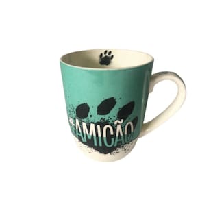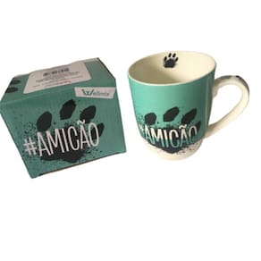 Caneca Amicão Cerâmica Verde 400Ml Wellmix Produto com embalagem. Composição: Porcelana Cor Predominante: Branca e verde Este produto possui um material resistente ao calor, Caneca em porcelana com estampa de Bulldog Francês, um modelo com óculos. Dimensões: Comprimento 11cm Largura 8cm Altura 9,5cm