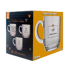 Com a Coleção Love, o amor é celebrado todo dia! Possui design exclusivo e apaixonante! Produzida em vidro incolor com corações decorativos e os dizeres "Café com amor". Possui 300ml, ideal para bebidas quentes. Contém embalagem personalizada, sendo uma excelente opção para presentes.