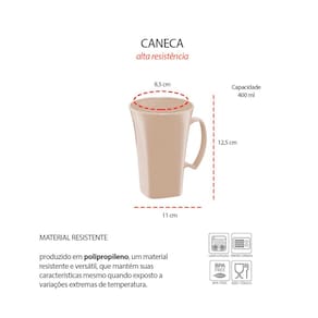 Contem: 4 Canecas Capacidade: 400 ml Dimensao: 12,5 x 11 cm Material: Polipropileno (PP)