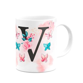 Caneca Butterfly - Inicial do nome letra V - 325ml