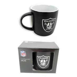 O logotipo dos Raiders está presente em baixo relevo na caneca, o que confere um realismo impressionante à peça. Feito com corte a laser, o logotipo apresenta detalhes precisos e de alta qualidade. Além disso, a caneca tem um design elegante, toda na cor preta, com o logotipo em fundo branco e parte interna na cor branca.