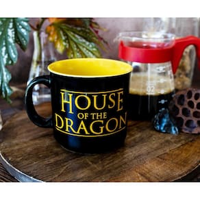 - SANGUE E FOGO: No Game of Thrones, você ganha ou morre. Às vezes, você nem está a salvo de sua própria família. Fique de olho nesta caneca de campista exclusiva na próxima reunião inspirada na série spin-off House of the Dragon.