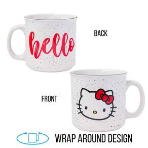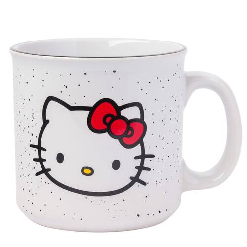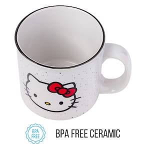 - CANECA DE CAMPER: Aproveite o seu café ou chá da manhã nesta adorável caneca de cerâmica para acampamento Hello Kitty de 590 ml. Apresentando Kitty e a palavra "olá" contra um fundo branco com uma borda preta