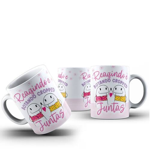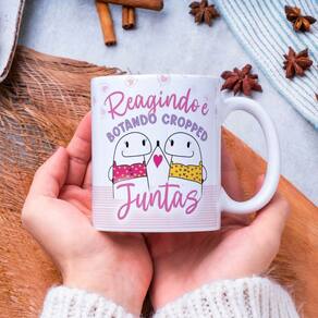 Caneca Cerâmica Flork Amigas " Reagindo e Botando Cropped "