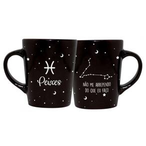 Caneca cerâmica signos zodíaco preta presente 270ml peixes Inspiradas pelo zodíaco, a coleção signos ilustradas irá te surpreender e deixar sua bebida favorita ainda mais saborosa a caneca signos é feita em cerâmica e tem capacidade de 270ml, design clean ideal para um café, chá, chocolate quente ou qualquer bebida de sua preferência. Sua estampa em branco possui a constelação do signo e uma frase que combina perfeitamente.
