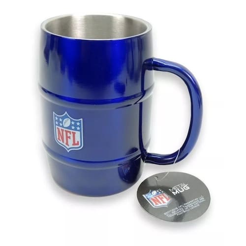 Caneca Chopp NFL Azul Aço Inox Barril 500ML Metal Mug