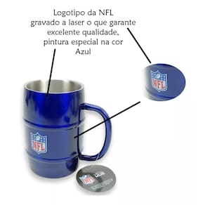 A marca NFL é conhecida mundialmente pela sua excelência na fabricação de produtos esportivos. Com a Caneca Chopp NFL Azul Aço Inox Barril 500ML Metal Mug, você está adquirindo um produto de qualidade, com garantia contra defeitos de 3 meses conforme CDC.