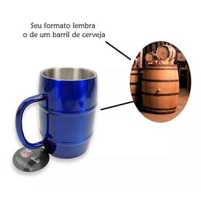 1. Qual o tamanho da Caneca Chopp NFL Azul Aço Inox Barril 500ML Metal Mug? R: A caneca possui 8,5 cm de diâmetro e 13 cm de altura.