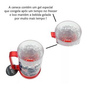 O diferencial dessa caneca está no gel congelante térmico que contém em seu interior. Esse gel especial congela após ser colocado sob baixas temperaturas, e assim, você pode evitar o uso de gelo que acaba deixando a bebida aguada. Basta colocar suas bebidas na caneca de gel congelado e aproveitar suas bebidas geladinhas por muito mais tempo, sem alterar o sabor.
