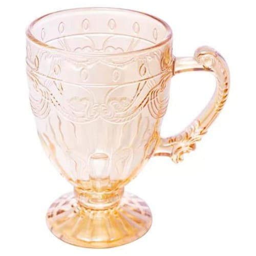Caneca classic gold 190ml vidro 7.2x6.6xh10.2cm A caneca classic em vidro de 190ml, na cor âmbar, da dolcehome é uma combinação perfeita de estilo entre o vintage e a elegância. Com sua tonalidade âmbar única e design clássico de caneca, esta peça é uma adição encantadora à sua coleção de louças, proporcionando uma experiência de bebida que é tanto visualmente impressionante quanto funcionalmente prática. Apresenta o tradicional design de caneca, com alça ergonômica e formato arredondado que oferece conforto ao segurar e beber, mas essa além disso tem um belo desenho no vidro. A tonalidade âmbar confere um charme vintage à caneca, adicionando um toque de elegância e estilo à sua mesa. Com uma capacidade de 190ml, esta caneca é perfeita para servir uma variedade de bebidas, como café, chá, chocolate quente e muito mais. adequada para uso em casa, no escritório ou em qualquer ocasião, esta caneca é versátil e funcional, atendendo às suas necessidades diárias. Contém: 1 caneca Material: vidro Capacidade: 190ml Cor: âmbar Altura: 11cm Diâmetro: 7cm Ean: 7899931519384