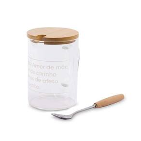 Caneca Com Colher E Tampa Amor De Mãe Qual é o segredo da receita do amor de mãe? Tentamos desenvolver e chegamos bem perto, mas como resultado criamos essa linda caneca de vidro com colher e tampa, para deixar seu cantinho favorito ainda mais cheio de carinho, além de servir como um ótimo presente para a pessoa mais especial da sua vida! 1 colher de carinho, 2 colheres de afeto: essa caneca tem o tamanho perfeito para armazenar a sua bebida favorita, quente ou gelada; e ainda acompanha tampa e colher para transportar o conteúdo de forma mais segura ou ser misturado se necessário.
