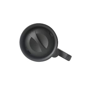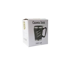 Caneca inox com frase e alça em plástico com excelente ergonomia e tampa com boa vedação.