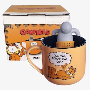 Caneca com Infusor Garfield Em tempos de Home Office um cházinho cai bem Além de linda, faz chá, para né Para fazer o chá é só adicionar água quente na caneca, ervas de sua preferencia no bonequinho e aguardar uns minutinhos, fácil e deliciosoA caneca é importada, e é uma ótima companhia para quem gosta de chá, possui 350ml de capacidade para você se esbaldar no lanchinho da tarde Tem 8,5cm de altura, 9,5cm de largura e comprimento, feito em cerâmica com detalhes impecáveis, pesa 310gr com o bonequinho e 280gr sem o boneco.Caneca:Altura: 8,5cm Largura: 9,5cm Profundidade: 9cm Peso: 310gr/ 280gr Capacidade: 350ml Material: CerâmicaBoneco:Altura: 8cm Largura: 2cm Comprimento: 6cm Peso: 0,30gr Material: Silicone