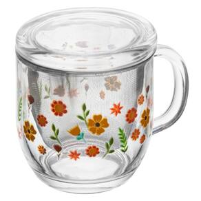 Descrição Caneca com Infusor e Tampa Primavera com Flores Lilás 330ml Vidro - Lyor