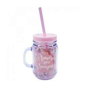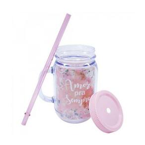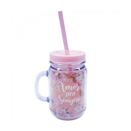 A caneca com tampa e canudo "Amor Pra Sempre" chegou na Fings Store. Internamente tem uma estampa de flores que é muito fofo. É um ótimo presente para dar a aquela pessoa em especial. Feita de um plástico resistente, essa caneca traz segurança e comodidade enquanto toma sua bebida favorita.