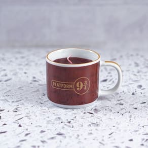 Caneca Vela Decorativa Plataforma 9 - Harry Potter é ideal para quem ama utilidade com praticidade! Quer iluminar seu cantinho e ainda deixar tudo bem cheirosinho? A gente te ajuda! Essa caneca acompanha uma vela artesanal perfumada, e quando acabar é só lavar e usar para tomar sua bebida favorita!