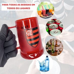 Caneca Copo Gel 300ml Vermelho Térmico Congelante Chopp Cerveja Bebida Time Libertadores Detalhes A caneca Gel é a escolha ideal para os verdadeiros torcedores demonstrarem todo o seu amor pelo time do coração. Esta caneca gel é a maneira perfeita de manter suas bebidas sempre geladas de uma forma super descontraída. Feita de acrílico de alta qualidade, a caneca contém um gel especial que congela quando colocada sob baixas temperaturas. Esqueça o incômodo de bebidas aguadas com gelo - coloque-as na Caneca Gel congelada e você poderá desfrutar de suas bebidas geladinhas por muito mais tempo, sem comprometer o sabor. Modo de Uso Simples: Coloque a caneca no freezer sempre com a boca para baixo. Deixe lá por no máximo 4 horas. Cuidados: Lave com água e sabão neutro para manter sua caneca em perfeitas condições. Não leve ao micro-ondas nem à máquina de lavar. Evite choques ou batidas que possam danificar o produto. Não congele em temperatura abaixo de -10C. Deixe por no máximo 4 horas no congelador. Marca: Não Informado Ean: 7732647215334