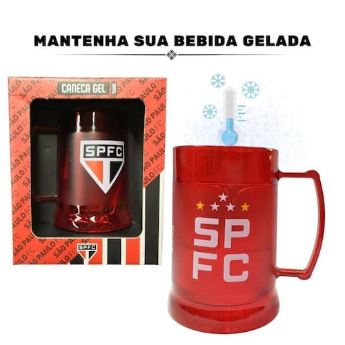 Caneca Copo Vermelho Gel 300ml Isolante Térmico Chopp Cerveja Clube Escudo Oficial Detalhes A caneca Gel é a escolha ideal para os verdadeiros torcedores demonstrarem todo o seu amor pelo time do coração. Esta caneca gel é a maneira perfeita de manter suas bebidas sempre geladas de uma forma super descontraída. Feita de acrílico de alta qualidade, a caneca contém um gel especial que congela quando colocada sob baixas temperaturas. Esqueça o incômodo de bebidas aguadas com gelo - coloque-as na Caneca Gel congelada e você poderá desfrutar de suas bebidas geladinhas por muito mais tempo, sem comprometer o sabor. Modo de Uso Simples: Coloque a caneca no freezer sempre com a boca para baixo. Deixe lá por no máximo 4 horas. Cuidados: Lave com água e sabão neutro para manter sua caneca em perfeitas condições. Não leve ao micro-ondas nem à máquina de lavar. Evite choques ou batidas que possam danificar o produto. Não congele em temperatura abaixo de -10C. Deixe por no máximo 4 horas no congelador.
