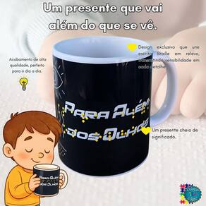 Descubra a Caneca Acessibilidade 325 ml em Braile alto relevo - Para além dos olhos, um produto que resgata a sensibilidade e promove inclusão no seu dia a dia. Com design exclusivo que une funcionalidade e estética, esta caneca traz a escrita em Braile em alto relevo, permitindo que pessoas com deficiência visual sintam a mensagem Para Além dos Olhos.